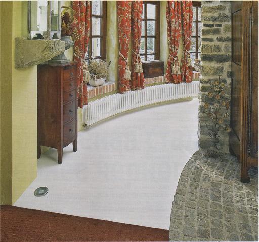 Современное и весьма перспективное напольное покрытие — наливной пол — образует сплошную толстослойную бесшовную поверхность, которой при желании можно придать любой цвет. Подготовка основанияЕсли основание представляет собой только что выполненную стяжку, для удаления пыли и прочих загрязнений достаточно простой влажной уборки, если же имелось прежнее покрытие — необходимо полностью удалить даже мелкие его остатки. После чего поверхность грунтуется. В данном случае используется грунтовка в виде сухой строительной смеси, белой или цветной, расфасованной в бумажные мешки и разводимой перед употреблением водой. На мешок смеси весом 25 кг требуется 4,7 л воды. При больших площадях грунтовку наносят при помощи насоса, но в данном случае поверхность пола невелика, и все работы можно выполнить вручную. После высыхания слоя грунтовки приступают к заливке пола. Тонкости заливкиСистема наливного пола состоит из двух компонентов, поэтому выпускается в комплекте из двух емкостей с необходимым для приготовления материала соотношением ингредиентов. Содержимое емкостей смешивается непосредственно перед употреблением, легко наносится и равномерно самораспределяется на поверхности основания. Для формирования декоративной и одновременно износостойкой поверхности система наливного пола комплектуется необходимым количеством кварцевого песка. При этом важна непрерывность процесса, поскольку смешанные компоненты образуют быстроотвердевающий состав. Нелишним подспорьем будет и коллективная работа — скажем, втроем выполнить работу по устройству пола будет гораздо легче. Устройство наливного пола начинают с самого удаленного участка, заливая из трех больших ведер одновременно для оптимально равномерного распределения массы по поверхности основания. По свежеуложенной массе в разных направлениях прокатывают игольчатый валик для удаления пузырьков воздуха и уплотнения слоя. При этом на поверхности формируется типичная для данной технологии шероховатая структура, слегка напоминающая апельсиновую корку. После чего при желании можно нанести на поверхность любой рисунок, при-дав покрытию индивидуальный характер.