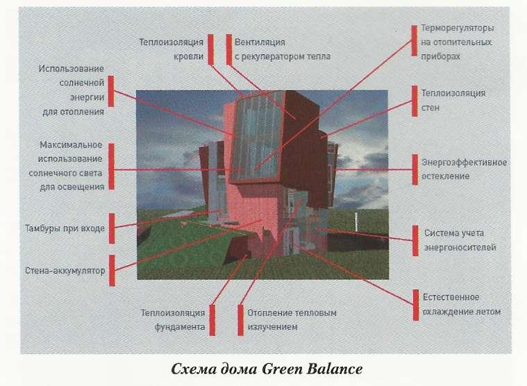 Здание было ориентировано так, чтобы большие окна располагались с южной стороны. Толщина каменной ваты по всей теплоизолирующей оболочке здания составляла от 25 до 50 см. Исследовательская работа в новом Центре началась непосредственно во время строительства, что позволило внедрить ряд технических решений, усовершенствовав проект. В процессе строительства были выявлены и ликвидированы так называемые мостики холода, которые увеличивали энергопотребление. Доработана теплоизоляция фундамента. Изменена конструкция оконных переплетов. Вентиляцией в Центре управляет компьютер («интеллектуальная система вентиляции»). Но самое главное - в результате появились рекомендации, на основании которых сегодня строят энергоэффективные дома, позволяющие решать многие вопросы еще на стадии проекта. Построенный центр получил звание «Офис года - 2000» и был признан одним из самых энергоэффективных офисов в мире. Сейчас примененные там технологии стали массовыми на Западе. Например, в Великобритании все новые дома к 2016 году планируют строить «с нулевыми выбросами С02». Этот термин означает, что дом сам обеспечивает себя энергией из возобновляемых источников, включая расходы на отопление, горячее водоснабжение, вентиляцию, освещение и все прочие потребности! Критериями отнесения дома к «пассивным» в Европе являются: удельный расход тепловой энергии на отопление, не превышающий 1 5 кВт-ч/м2 в год, и общее потребление первичной энергии для всех бытовых нужд не более 1 20 кВт-ч/м2 в год.