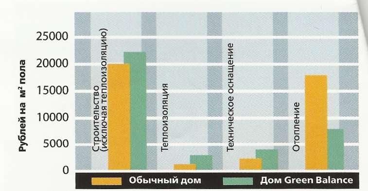 Еще один интересный энергоэффективный дом недавно построен в Подмосковье. GREEN BALANCE - так он называется - спроектирован таким образом, чтобы электричество и отопление в нем использовались минимально. Потребление энергии на отопление дома GREEN BALANCE составляет всего 63 кВт-ч/м2 в год, что на 60% меньше нормативного! В целом отношение площади ограждающих конструкций к полезной площади меньше, чем в традиционных домах, таким образом, достигнуто уменьшение площади поверхности ограждающих конструкций, с которыхуходит тепло. Теплоизоляции здесь вообще уделено самое пристальное внимание: все конструкции дома качественно утеплены, при этом акцент был сделан на ликвидацию мостиков холода. Пол первого этажа заглублен на 1,5 м и утеплен плитами ROCKWOOL Флор Баттс, а стены, соприкасающиеся с грунтом, выполнены из кирпича и утеплены плитами ROCKWOOL Венти Баттс. До мелочей продумана и звукоизоляция здания: межэтажные перекрытия и межкомнатные перегородки изолированы плитами ROCKWOOL Акустик Баттс, а жилые помещения оборудованы подвесными потолками с акустическими потолочными панелями ROCKFON.