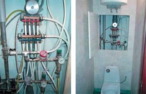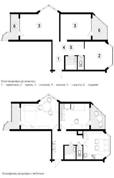 Работы по монтажу внутренних инженерных сетей и оборудования в любых зданиях, в том числе жилых, относятся к числу наиболее ответственных. Их должны производить только специалисты-профессионалы, имеющие соответствующее образование, а строительная компания лицензию. Для выполнения сантехнических и электромонтажных работ на нашей «экспериментальной» квартире таких специалистов любезно предоставила известная московская строительная фирма Центр «АРД» за это ей огромное спасибо! В наше распоряжение были выделены двое сантехников Миша и его подсобник Дима, а также электрик Иван. Они в числе первых приступили к нашему ремонту. На квартиру они периодически приезжали в промежутках между работой на других своих объектах, привозили с собой весь необходимый инструмент. Все, что нужно, быстро делали и сразу уезжали. График бригады, а в этой главе мы рассказываем только о сантехнике, выглядел следующим образом. Сначала они отсоединили и вынесли в мусорный контейнер все отводы от водопроводных стояков и канализации, затем сделали новые разводки труб по согласованному устно с заказчиками техзаданию. Это заняло два дня. Через определенное время, когда пол в ванной комнате уже был облицован плиткой, приехали опять, поставили новую ванну и уехали. И в самом конце отделочных работ ребята приезжали еще два раза. За один день установили раковину, смесители и поло-тенцесушитель в ванной, а унитаз и водонагреватель в туалете. Чуть позже, после того как появилась кухня и сонная команда из двух монтажников нехотя ее собрала, наши молодцы-сантехники «прилетели» в последний раз, за полдня врезали и подключили мойку, уста новили фильтр питьевой воды и стиральную машину. В общем, вся сантехническая работа Миши и Димы на нашем объекте заняла всего пять дней, если считать вместе с первым ознакомительным визитом. Еще из Центра «АРД» в числе «группы инженерно-технической поддержки» в какой-то момент, когда стройка шла полным ходом, прибыли двое других рабочих - сварщик Валера и его помощник. У них была конкретная задача, о которой они сообщили так: «Начальство сказало, чтобы заменить вам радиаторы. Можно баллоны заносить?». Срочно вызвали сантехника из ДЕЗа отключать стояки. Так как на дворе стояла зима, отключение проводилось по очереди, один стояк сделали, затем другой. Стояков, как и радиаторов, в «подопытной» двухкомнатной квартире было пять (из-за ее расположения в торце дома). В комнатах - по два, на кухне - один. На каждый из них Валера с коллегой потратили примерно по часу-полутора. К вечеру их работа была успешно закончена. За один рабочий день они сняли конвекторы, переварили отводы стояков отопления под осевой размер 500 мм, установили перемычки, шаровые запорные краны, завинтили переходные гайки, навесили приборы на кронштейны и затем подключили эти замечательные, новые, биметаллические, секционные радиаторы. Но вернемся опять к началу сантехнических работ и расскажем о них подробнее. Существующая система водоснабжения многоэтажного дома, в котором мы организовали ремонт, представляла собой стояки горячей и холодной воды, изготовленные из оцинкованных труб. От них имелись ответвления на каждую квартиру. Эти стояки, вместе с канализационным из ПВХ, располагались у задней стенки в туалете и были прикрыты грубо сколоченным подобием коммуника