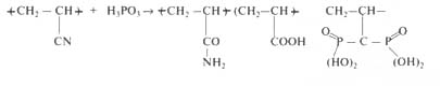 Из числа органорастворимых наиболее широко известна грунтовка ЭП-0199, выпускаемая различными отечественными производителями. В последние годы нашла применение новая грунтовка ХС-0320 (ТУ 2313-185-05034239-2002), которая выпускается НПФ «Пигмент». Грунтовка наносится по ржавчине с остатками плотно держащегося слоя толщиной до 100 мкм. Из большого ассортимента составов преобразователей ржавчины, в настоящее время выпускаемых отечественной промышленностью, следует отметить Hotex-K (ТУ 21-01-43443334—96), который можно наносить на сварные швы. На основе комплексонов ОЭДФ и НТФ разработана смывка АС-34 для Для удаления продуктов коррозии возможно применение состава на основе фосфорилированного полиакрилата, разработанного НПФ «Пигмент» [16] и представляющего собой продукт взаимодействия полиакрилонитрила и фосфористой кислоты предположительно следующего строения:
