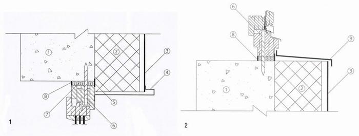 2 - утеплитель; 3 - вент, фасад; 4 - нащельник; 5 - паропроницаемый отверждающийся силиконовый герметик ПАРОСИЛ; 6 - рамный анкер HDR 10x120 мм с шагом 700-800 мм; 7 - пена монтажная; 8 - пароизолирующий бутиловый герметик БУТИЗОЛ-МОК; 9 - отлив. ![]() Рис. 3,4 Узел крепления оконного блока на объекте по адресу: ул. Сайкина, 19