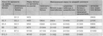 Марки легкого и автоклавного ячеистого бетона однослойных панелей и внутреннего слоя двухслойных панелей с экраном, легкого бетона теплоизоляционного слоя сплошных двухслойных панелей, предназначенных для надземных этажей, приведены в табл. 2.