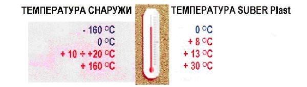 Термоизоляционный Один из секретов SUBER Plast - это реакция пробки на температуру. Материал тёплый от природы, при постоянной минусовой температуре воздуха, никогда не понижается до температуры ниже отметки ноль градусов.