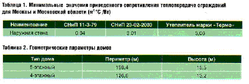 Экономическая эффективность теплосбереженияВажнейшим направлением в решении жилищной проблемы в современных условиях, в связи с нарастанием объемов морального и физического износа устаревшего жилищного фонда Российской Федерации и огромной потребности в жилье населения страны, является реконструкция устаревшего жилого фонда. Целью реконструкции является приведение существующего устаревшего морально и физически жилищного фонда в соответствие социальным и техническим нормам, стандартам и условиям проживания. Альтернативным вариантом реконструкции устаревшего жилищного фонда является его снос и строительство нового здания на освободившейся территории, поэтому относительная экономическая эффективность реконструкции рассчитывается в сравнении с новым строительством. В качестве анализируемых объектов реконструкции принимаются три жилых дома: один пятиэтажный и два четырехэтажных здания из силикатного кирпича с облицовкой керамическим пустотным камнем, построенные в 1958-1959 годах по типовому проекту серии 1-447. На месте этих трех домов мог бы быть построен 10-подъездный 17-этажный дом, относительно недорогой массовой типовой серии П-44, для переселения в него жильцов старых домов, очередников города, а также для коммерческой продажи квартир. Однако в связи с отсутствием в настоящее время достаточного количества технических и материальных ресурсов для развития жилищного строительства и низкой покупательной способностью местного населения единственным способом сохранения существующего жилищного фонда и его прироста является реконструкция, обеспечивающая быструю оборачиваемость вкладываемых средств с относительно меньшим риском, чем в новое строительство. Реконструкция жилых зданий направлена прежде всего на повышение их энергетической эффективности. Важным резервом экономии топливно-энергетических ресурсов в системах отопления зданий является повышение тепловой защиты ограждающей оболочки здания. Пример расчета экономической эффективности теплоизоляции фасадов Для снижения тепловых потерь через фасады здания реконструкцией предусматривается комплексная теплоизоляция зданий, которая обеспечивает увеличение приведенного сопротивления теплопередаче наружных стен на 105%, окон и балконных дверей на 50%, а также снижение их нормативной воздухопроницаемости на 40% по отношению к старым нормам. В расчетах приняты значения минимальных приведенных сопротивлений теплопередаче соответственно СНиП И-3-79 "Строительная теплотехника" и СНиП 23-02-2003. При использовании утеплителя марки "Термо" толщиной 100 мм и значением теплопроводности, равной 0,045 Вт/(м °С), значение приведенного сопротивления теплопередаче ограждений будет равным 3,06 м2 °С/Вт. Продолжительность отопительного периода для Москвы и Московской области составляет 213 суток, расчетная температура внутреннего воздуха +20 °С, средняя температура отопительного периода -3,6 °С. Приведенное сопротивление теплопередаче ограждающей конструкции до реконструкции 0,84 м2оС /Вт, после реконструкции 3,06 м2оС/Вт при использовании в качестве утеплителя типа "Термо".