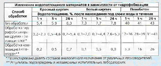 Основные достоинства композиций "Неогард-1" и "Неогард-2" Как видно из данных таблицы, композиции "Неогард-1" и "Неогард-2" обеспечивают превосходную гидрофобную защиту силикатных строительных материалов. При этом они являются одними из наиболее дешевых. Объемная гидрофобизация изделий из гипса Общеизвестно, что наряду с многочисленными достоинствами изделия из гипса имеет и существенный недостаток - крайне низкую водостойкость. Попадание воды на поверхность таких изделий приводит к практически мгновенному намоканию, намокший же гипс катастрофически теряет свою прочность. То же происходит и в условиях высокой влажности. Поэтому изделия из негидрофобизированного гипса могут быть использованы только для внутренней отделки отапливаемых помещений, да и то до первой "протечки". В НПФ "НЕО+" разработана гидрофо-бизирующая добавка "Неогард-гипс-0,2". Она представляет собой полностью готовую к применению композицию на основе крем-нийорганических олигомеров с активными присадками. Основные достоинства добавки ""Неогард-гипс-0,2" При этом цена добавки "Неогард-гипс-0,2" ниже, чем других составов аналогичного назначения. Гидрофобизация изделий из дерева и материалов на его основе Известно, что дерево обладает невысокой устойчивостью к воздействию воды и влаги, в результате которого оно набухает, а после высыхания коробится и растрескивается. Еще более катастрофичным может оказаться действие воды на фанеру, ДСП и подобные им материалы: даже после однократного намокания они могут деформироваться, расслоиться и полностью потерять свои товарные свойства. Кроме того, влажное дерево является питательной средой для развития плесени, грибов и водорослей, которые сначала образуют малоэстетичные белые, черные или зеленые пятна на поверхности изделия, а затем достаточно быстро разрушают его. Для защиты от воздействия воды древесину обычно пропитывают олифой или покрывают лаком или краской, но эти способы обработки лишают ее одного из главных достоинств- способности "дышать". Альтернативой служит обработка дерева гидрофобизирующими составами. Эти составы, не отнимая у древесины способности к воздухо- и влагообмену, лишают ее способности смачиваться водой. Недавно в НПФ "НЕО+" был разработан и внедрен в производство специализированный гидрофобизирующий состав "Неогард-дерево-40". Его эффективность обусловлена специальным подбором комбинации "растворитель - активное вещество - "катализатор" (уместно отметить, что составы на водной основе малопригодны для гидрофобизации дерева, так как плохо проникают вглубь). Действенность композиции доказывают следующие цифры. После обработки "составом "Неогард-дерево-40" при кратковременном (2-6 ч) воздействии воды водопоглощение изделий из лиственных пород дерева уменьшается в 4-6 раз, из хвойных пород - в 2-4 раза, из фанеры - в 3-5 раз, из ДСП - в 1 5-25 раз. Кровельные и изоляционные материалы. №5,2008
