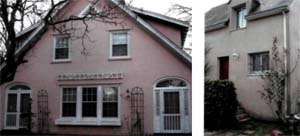 Два элемента одного фасадаПо технологии выполнения штукатурка бывает монолитной («мокрой») и «сухой» (выполненной с использованием отдельных обшивочных листов, как правило, гипсовых). Для фасадов используется исключительно монолитная штукатурка. Она представляет собой нанесенный на стену, определенным образом обработанный и затем отвердевший строительный раствор. В зависимости от состава применяемого раствора и вида обработки поверхности монолитная штукатурка может быть обычной, декоративной и специальной. Самая обычная В зависимости от предназначения здания обычная штукатурка бывает простой, улучшенной и высококачественной Простая штукатурка применяется при отделке временных зданий, а также промышленных, складских и подвальных помещений, она состоит из одного слоя обрызга и одного слоя грунта, максимальная толщина слоя составляет 18 мм Допустимая неровность - 3 мм на 1 м. Отклонение по вертикали на всю высоту помещения допускается не более 15 мм. Улучшенная штукатурка применяется при отделке жилых и общественных зданий, реже для промышленных сооружений. Она состоит из одного слоя обрызга, одного слоя грунта и накрывочного слоя. Максимальная толщина слоя - 20 мм. Допустимая неровность - 2 мм на 1 м. Отклонение по вертикали на всю высоту помещения допускается не более 10 мм. Высококачественная штукатурка в основном применяется при отделке жилых и общественных зданий, а также для сооружений с повышенными требованиями к отделке. Она состоит из одного слоя обрызга, нескольких слоев грунта и одного накрывочного слоя. Максимальная толщина слоя составляет 25 мм. Допустимая неровность - 1 мм на 1 м Отклонение по вертикали на всю высоту помещения допускается не более 5 мм Призванные декорировать Все три вышеперечисленные вида обычной штукатурки после отвердевания, как правило, окрашиваются различными фасадными красками. в отличие от пяти основных видов декоративных штукатурок, которые уже имеют определенный цвет, благодаря использованию цветного цемента или его окрашенных пигментов, а также цветного наполнителя. Кроме, этого декоративная штукатурка может быть фактурной, которая впоследствии окрашивается в любой необходимый согласно дизайнерскому замыслу цвет. По типу связующего материала декоративные штукатурки подразделяются на следующие виды: Известково-песчаные штукатурки изготавливаются из известковой массы с добавлением или без добавления цемента, кварцевого песка или песка из цветных каменных пород и пигмента. Таким штукатуркам после обработки в пластическом состоянии придается гладкая или рельефная фактура. Материалом для терразитоеых штукатурок служит гашеная известь с добавлением или без добавления цемента, мраморной крошки или муки, а также слюды и пигмента Такие штукатурки обладают большей жесткостью, нежели известково-песчаные Обрабатываются они в основном методом циклевания или срубания для получения вида сколотого камня. Каменные штукатурки, как правило, изготавливаются из цемента с добавлением известкового теста в количестве 5% для придания эластичности, а также мраморной крошки или других каменных пород. Они еще более жесткие, чем известково-песчаные и терразитовые штукатурки. Чаще всего после отвердевания обрабатываются зубилами или травлением кислотой. Штукатурки, травленые кислотой, с