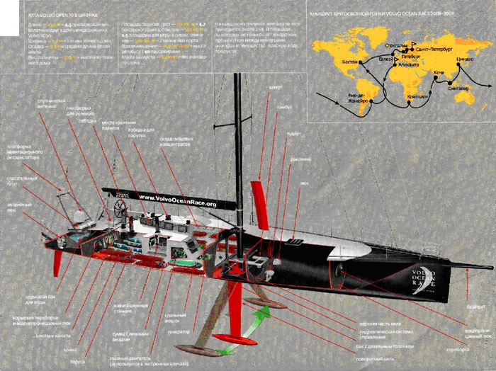 9 месяцев океанаНа пристани в Аликанте столпотворение. Вся жизнь городка сосредоточилась в гоночной деревне - ждут старта. Вдоль набережной выстроились все восемь яхт - участницы регаты. Зрители фотографируются на их фоне. Самой большой популярностью пользуется красно-черная американская красавица Puma. Иду дальше - российская лодка предпоследняя. Почти вся белая, без рекламы, единственный опознавательный знак - стилизованные купола на корпусе, да и те в глаза не бросаются. Члены экипажа суетятся на палубе - готовятся к старту, но для журналистов в виде исключения проводят экскурсию. Разуваюсь на берегу и босиком перелезаю через борт: хотя судно и пришвартовано к пристани, его так качает на волнах, что полуметровое расстояние, отделяющее яхту от берега, новичку не перепрыгнуть. Зато моряки к качке привыкли - мгновенно перелетают с берега на палубу. На самой яхте толпятся корреспонденты, по очереди спускаются вниз, в жилую зону, которая больше похожа на камеру строгого режима, куда добровольно заточили себя одиннадцать взрослых мужчин. По крайней мере, такое впечатление складывается на первый взгляд. Одна над другой к стенке прикручены узенькие койки - полки в купе поезда и то намного шире. Все занято приборами, по палубе змеями тянутся канаты и веревки, лежат паруса, еще какие-то снасти. Кажется, что на лодке нет места людям. И все же это - только на первый взгляд. На самом деле суда класса Volvo Open 70 - самые большие однокорпусные яхты в мире, престижные лодки нового поколения, которым под силу обогнуть земной шар. Недаром Volvo Ocean Race называют парусной "Формулой-i". Практически к каждой гонке команды строят новые суда, используя самые последние достижения в гидродинамике, материаловедении и еще десятке дисциплин. В общем, участие в такой регате - удел настоящих мужчин, которые уходят в море, чтобы доказать себе и всем окружающим: "Мы это можем!"