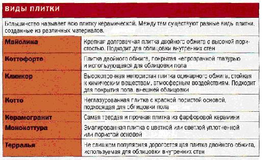 Сейчас редко увидишь квартиру, в которой стены или пол хотя бы в одной комнате не были отделаны керамической плиткой. Специалисты выяснили, что сегодня это самый популярный материал. Мы уверены, что знаем о плитке все, но как только дело касается выбора новой керамики, выясняется, что мало кто представляет, как купить подходящюю. Затеяв ремонт, большинство нанимает профессионалов, однако выбирать материалы для отделки предпочитает самостоятельно. В магазине, где представлен широкий выбор плитки, на первый взгляд новичку ремонта кажется, что все многообразие отличается разве что цветом, рисунком и размером. На самом деле все гораздо сложнее. ПЛИТКА ДЛЯ ВАННОЙ Чтобы не ошибиться в выборе, начать нужно с ответа на вопрос, для какого помещения вы подбираете плитку. Одну и туже керамику нельзя использовать для отделки разных поверхностей. Одни виды плитки предназначены для пола, другие - для отделки стен, причем в разных помещениях, третьи - для наружных работ. Традиционно плитку используют в отделке ванной комнаты и кухни, нередко коридора, а иногда и жилых комнат. Из этого и будем исходить. К примеру, вам нужен материал для облицовки стен ванной комнаты. Основная особенность этого помещения - высокая влажность. Следовательно, вам понадобится глазурованный водостойкий материал с небольшой пористостью, а значит, низким водопоглощением и гигроскопичностью. Износостойкость в данном случае особой роли не играет - вы вряд ли будете проверять стены на прочность. А вот на что следует обратить внимание, так это на то, как выбранный вами материал переносит воздействие химикатов и кислот. На упаковке такой плитки должна быть пиктограмма АА или А. Еще один момент, который нужно учесть в данном случае, - размер плиток. Чтобы уменьшить количество межплиточных швов, которые в отличие от керамики воду пропускают, специалисты предлагют выбирать крупные квадраты. Особенно где есть непосредственный контакт с водой. К напольной плитке предъявляют более есткие требования, ведь ей предстоит испытывать интенсивные нагрузки, соответственно, материал для пола должен быть более прочным и износостойким. Поскольку в ванной комнате обычно ходят босиком или в мягких тапочках, здесь подойдет плитка второго класса стойкости - та, на упаковке которой написано PEIII. Важно, чтобы покрытие в этом помещении не было скользким - оптимальна шероховатая матовая поверхность, имеющая повышенную устойчивость к влиянию агрессивных веществ. В ванной будет уместна низкопористая клинкерная плитка, неглазурованная плитка котто. ОТДЕЛКА ДЛЯ КУХНИ Трудно придумать более подходящую отделку для кухни, чем плитка. Вы можете "одеть" в керамику все стены или так называемый фартук - зону возле раковины и разделочного стола. Учитывая, что в этом помещении на стены попадает вода, жир, кислоты, их часто приходится мыть с помощью чистящих порошков, понадобится материал с толстым слоем глазури, водостойкий, прочный, химически инертный, не боящийся высоких температур. Можно отделать кухонные стены майоликой, грубоватым котто, виниловой плиткой, керамикой с глазурью или без. Подыскивая плитку для пола, имейте в виду: нагрузка на кухонное напольное покрытие достаточно высока - на пол падают металлические предметы, попадает вода и химические веще ства. Понадобится прочный твердый материа