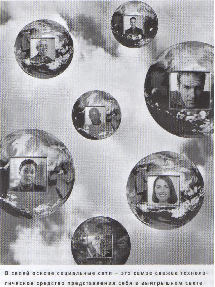 Новая технология, поддерживающая межличностные впечатления, так называемая социальная сеть. В своей основе, тем не менее, это самое свежее технологическое средство представления себя в выигрышном свете. Жизнь постепенно становится таким же проводником, как телевидение, радио или фото, и все мы артисты и зрители грандиозного бесконечного шоу.