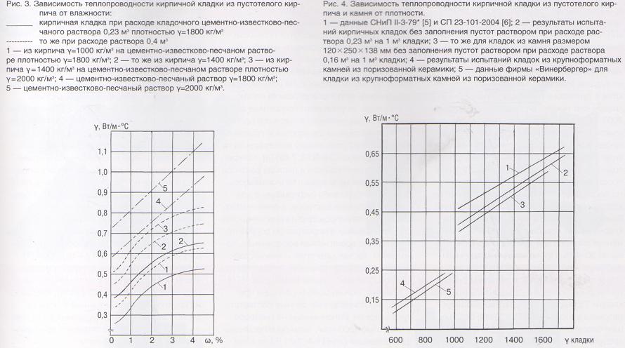 Если бы материалы кирпичной кладки находились при эксплуатации в сухом состоянии, то повышенное содержание цементно-известково-песчаного раствора плотностью 1800 кг/м3 не приводило бы к ощутимому снижению теплозащитных качеств наружных кирпичных стен, поскольку его коэффициент теплопроводности (λ), равный в этих условиях 0,58 Вт/(м*oС), при одинаковой плотности с керамикой (1800 кг/м3), незначительно превышает ее теплопроводность, равную 0,55 Вт/(м*oС). Но, к сожалению, они в условиях эксплуатации имеют существенно отличающуюся влажность, которая значительно повышает λ стены. Сорбционная влажность цементно-известково-песчаного раствора приближается к 5%, а полнотелого керамического кирпича не превышает 1%.