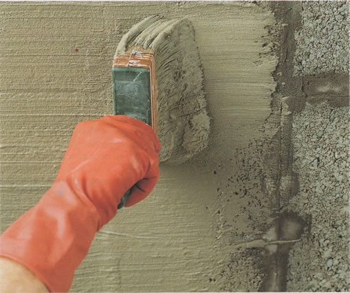 НанесениеСпособ нанесения определяется различными факторами и может включать: нанесение кистью, валиком, шпателем или распылителем. Последний не всегда рекомендуется для устройства защиты на больших площадях. Этот метод (на больших площадях) наименее трудозатратный, но существенно зависим от качества подготовки поверхности (см, выше). Преимущество возможности тонкослойного нанесения может оказаться недостатком на неадекватно подготовленной поверхности. Использование грунтовок направлено на улучшение прочностных характеристик поверхностного слоя бетона, на выравнивание пористости поверхности, на улучшение адгезии защитного слоя к основанию бетона, на уменьшение впитываемости основанием материала защитного слоя. Грунтовок существует огромное количество. Правильный выбор грунтовки важен для долговечности защиты. Правильный выбор определяется совместимостью грунтовки и основного защитного слоя при правильном сопоставлении условий применения грунтовки на основании и характеристик грунтовки. Нанесение низковязких грунтовок, особенно проникающего действия, на вертикальных поверхностях следует вести снизу вверх, чтобы избежать (когда эта грунтовка стекает вниз) ложного впечатления о площади выполненных работ. Не лишним будет напомнить о необходимости защиты смежных поверхностей из или с материалами, могущими пострадать от защитного покрытия. Например, деформационный шов с полиуретановым герметиком под воздействием эпоксидной смолы на растворителе. Вообще, большинство современных материалов вторичной защиты изначально запроектированы с высокой адгезией к основанию и износостойкостью (читай затрудненностью удаления) полимеризовавшегося защитного слоя. Поэтому избегайте «подкрашивания или перекрашивания». Измерение толщиныЗащитные покрытия предлагаются к применению толщиной высохшей и полимеризовавшейся пленки, минимальной для обеспечения требуемого уровня защиты, при условии целостности пленки (без пор). Нередки случаи, когда подрядчик был вынужден за свой счет осуществлять повторное дорогостоящее нанесения материала из-за недопонимания смысла выражения «толщина защитного покрытия». Не существует единого мнения по поводу выбора техники и способа нанесения материала нужной толщиной. Необходимо понимать следующее: