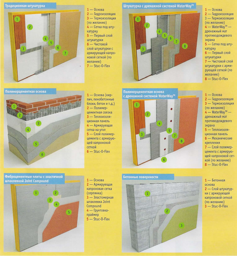 Stuc-O-Flex образует на поверхности зданий защитную всепогодную мембрану — цветное сверхнадежное и долговечное невыцветающее покрытие с защитой от плесени. Стопроцентные акриловые полимеры высочайшего качества обеспечивают оптимальное сопротивление растрескиванию поверхностей. Четыре различные текстуры продукта — мелкозернистая, песочная, крупнозернистая, рельефная — открывают широкие возможности для финишной отделки.