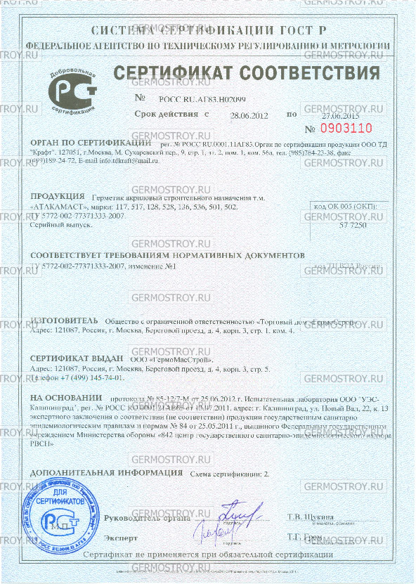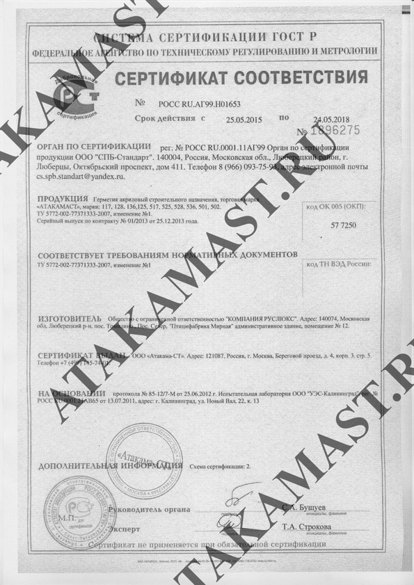 Сертификаты Атакамаст