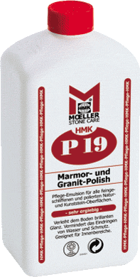 HMK P19СВОЙСТВА: Эмульсия (концентрат) для защиты и ухода, содержащая воск для тонко отшлифованных и полированных поверхностей из природного и строительного камня, на пример мрамор, известняк, гранит, гнейс, агломрамор. бетонный штучный камень и др. После полировки он придает поверхности сверкающий блеск. Препятствует проникновению воды и грязи. При регулярном приминении HMK Р19 уменьшает старение поверхности. Только для внутреннего применения! ПРИМЕНЕНИЕ: Отключить панельное отопление в полу. Тщательно очистить охлажденное основание природного камня от налета, подождать пока оно высохнет (макс. остаточная влажность приб. 6%). Перед употреблением хорошо взболтать. При первой обработке разбавить теплой водой в соотношении 1:20. Мягкой тряпкой или губкой нанести тонкий и равномерный слой. После высыхания матового покрытия отполировать вручную мягкой тряпкой или автоматическим способом посредством овчины. При использовании моющих машин мы рекомендуем применять противопенное средство Z 102. Проверить на образцовой поверхности, чтобы установить пригодность и расход. Температура обработки должна составлять от +12 до +25°CПродолжительность высыхания: зависит от комнатной температуры и циркуляции воздуха и составляет, приблизительно, 50-60 минут. » Беречь от детей. » Соблюдайте НМК-рекомендации по обработке! |