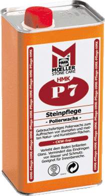 HMK P7СВОЙСТВА: Полировочный воск, готовый к употреблению. Оптимизирует цвет и структуру природных камней, агломрамора, бетонного штучного камня и др. Придает поверхности после полировки великолепный блеск. Препятствует проникновению воды и грязи. Только для внутреннего применения! Р7 не содержит хлорированных углеводородов. ПРИМЕНЕНИЕ: Отключить панельное отопление в полу. Тщательно очистить охлажденную поверхность природного камня от налета, подождать пока она высохнет (максимальная остаточная влажность 2-4%). Мягкой тряпкой нанести тонкий и равномерный слой на впитывающую поверхность. После высыхания, матовую поверхность отполировать вручную мягкой тряпкой или автоматическим способом посредством овчины. При сильно впитывающих поверхностях или при недостаточном образовании блеска следует повторить процедуру. Проверить на образцовой поверхности, чтобы установить пригодность и расход. Температура обработки должна составлять от +12 до +25°CПродолжительность высыхания: зависит от комнатной температуры и циркуляции воздуха и составляет, приблизительно, 20-30 минут. » Беречь от детей. » Соблюдайте НМК-рекомендации по обработке! |