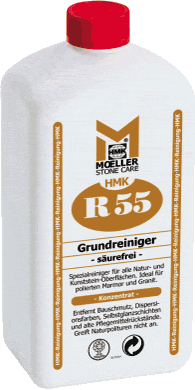 HMK R55СВОЙСТВА: Специальное средство для чистки (концентрат). Оно удаляет строительную грязь, дисперсионные краски, слои блеска, остатки старых средств по уходу, жиры и масла, а также легкий цементный налет с поверхностей природного и искусственного камня. Для внутреннего и внешнего применения. Средство не действует на полированные поверхности. ПРИМЕНЕНИЕ: Отключить панельное отопление в полу. На охлажденную поверхность в зависимости от степени загрязнения нанести разбавленный водой раствор (от 1:2 до 1:10). Оработать при помощи швабры, щетки или другим удобным для Вас способом. Подождать приблизительно 10 минут, снова обработать и снять загрязненный слой. Затем тщательно и обильно промыть поверхность чистой водой. При очень сильном загрязнении также можно использовать R55 в концентрированном виде. При использовании моющих машин мы рекомендуем применять противопенное средство HMK Z102. Проверить на образцовой поверхности, чтобы установить пригодность и расход. Температура обработки должна составлять от +12 до +25°C ВАЖНО: Не обрабатывать под прямым попаданием солнечных лучей. Не обрабатывать пластмассы, пропитанное и парафинированное дерево, лакированные поверхности. Распылитель сразу же протереть и промыть чистой водой.» Беречь от детей. » Соблюдайте НМК-рекомендации по обработке! |