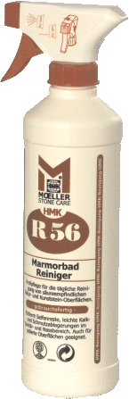 HMK R56СВОЙСТВА: Это готовое к применению мягко-щелочное специальное чистящее средство, которое специально разрабатывалось для очистки душевых кабин, ванн, банных помещений из мрамора. HMK R56 удаляет мыльные остатки, налёт калька, лёгкую грязь, а также лёгкие жировые и масленые загрязнения от косметических кремов с полированных поверхностей мрамора. ПРИМЕНЕНИЕ: Равномерно распылить и до высыхания обработать щеткой или губкой. Обильно смыть водой. При необходимости повторить. Проверить на образцовой поверхности, чтобы установить пригодность и расход. Температура обработки должна составлять от +12 до +25°C » Беречь от детей.» Соблюдайте НМК-рекомендации по обработке! |