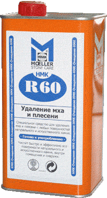 HMK R60СВОЙСТВА: R 60 является готовым к применению специальным чистящим средством длительного действия, для более легкой чистки небольших поверхностей. Быстро и эффективно удаляет загрязнения, такие как: мох, грибки, плесень на надгробных плитах, дорожках, лестницах из натурального и искусственного камня, плитки, других поверхностях внутри помещения и снаружи. Подходит для полированных поверхностей. Удаляет такие органические загрязнения как: кофе, кола, красное вино, пятна от цветов, ягоды, фрукты или дубильная кислота. ПРИМЕНЕНИЕ: HMK R60 нанести на охлажденную, сухую поверхность и оставить на одну минуту (не допускать высыхания). Обработать при помощи швабры, щетки или другим удобным для этого инструментом. Обработанную поверхность промыть чистой водой. При очень сильных загрязнениях процесс обработки произвести повторно. Проверить на образцовой поверхности, чтобы установить пригодность и расход. Температура обработки должна составлять от +12 до +25°C » Беречь от детей. Важно: Не обрабатывать под воздействием прямых солнечных лучей. Вызывает выцветание на текстиле. Не допускать попадания на растения. R 60 должен быть израсходован в течении 6 месяцев. После использования распылитель необходимо промыть водой. |