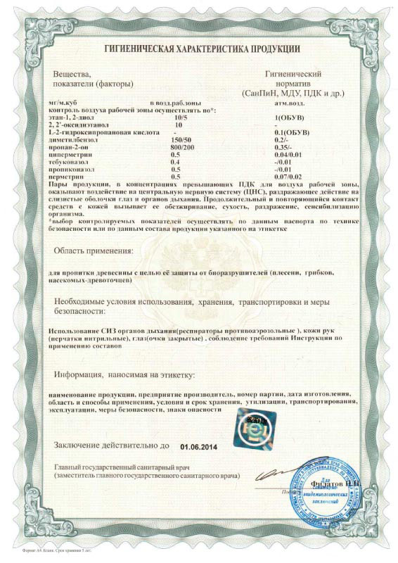 Российские разрешительные документы для биоцидов, в соответствии с действующим законодательством, включают в себя экспертное заключение и санитарно-эпидемиологическое заключение, выдаваемые Федеральной службой Роспотребнадзора.
