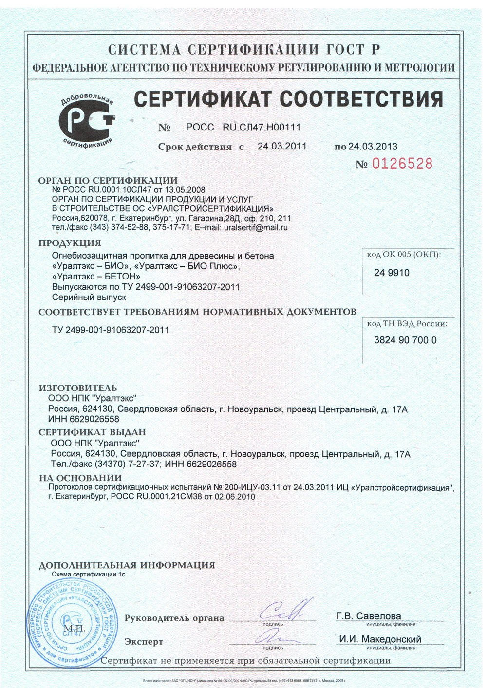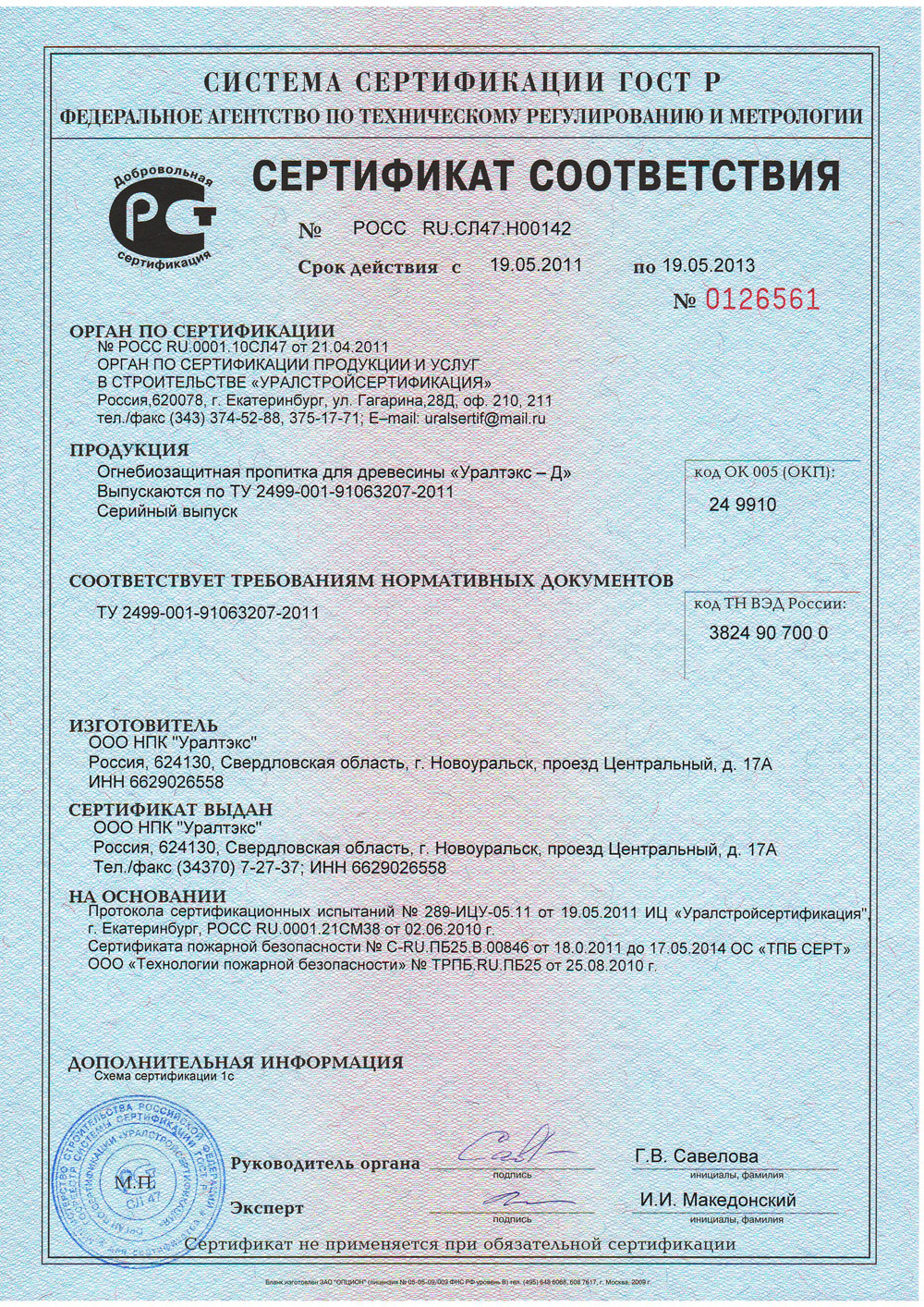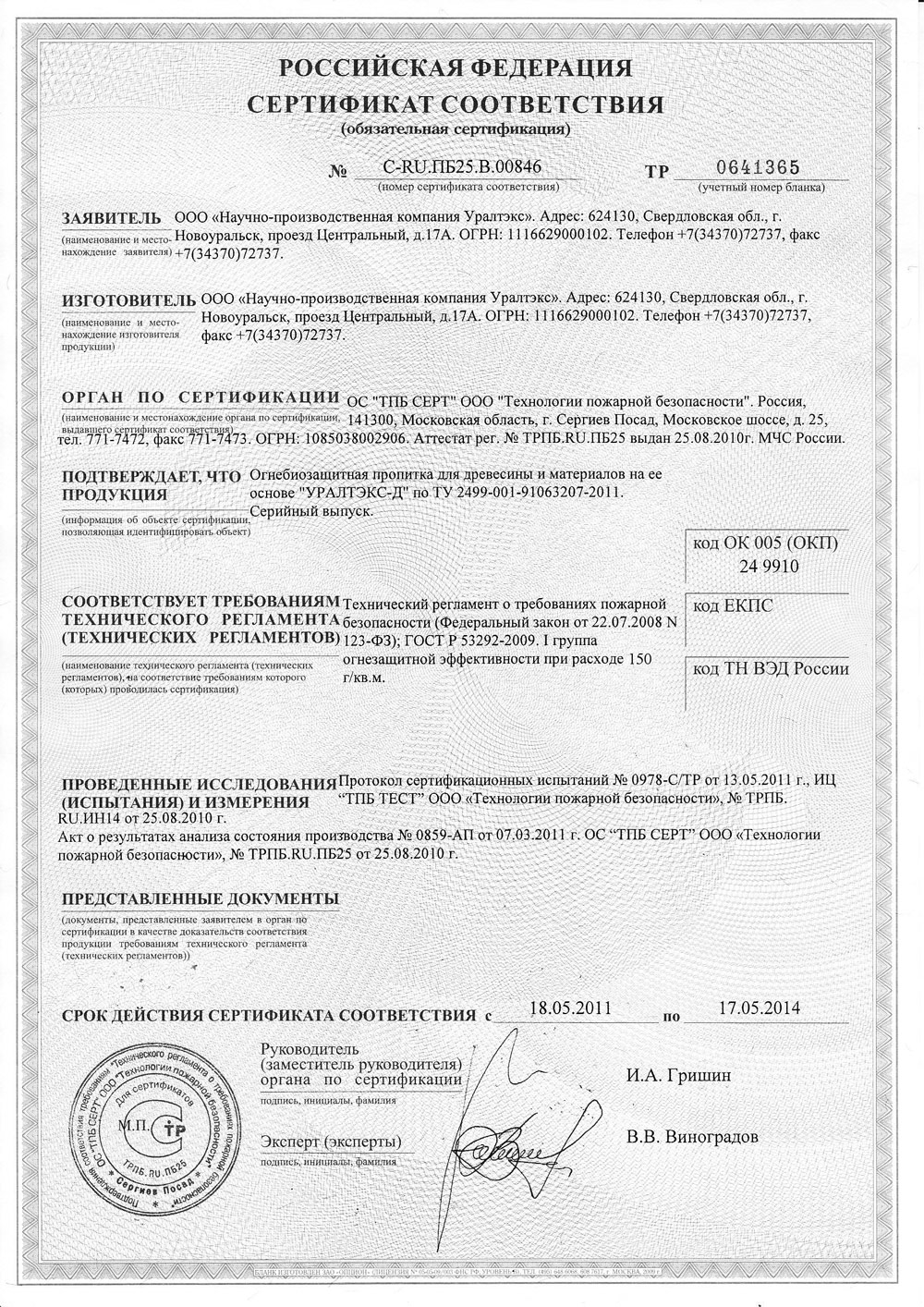 Сертификаты Уралтекс