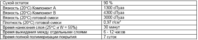 Соотношение компонентов при смешивании 1/1 (компоненты А/В). Время работы после смешивания 25 – 30 минут (при 200С).