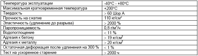 Исключительная эластичность (>2000%) в широком диапазоне температур (-400С - +800С).