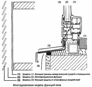 Уровень (2) можно рассматривать как функциональную зону, правильный выбор которой может, в частности, в течение определённого времени обеспечивать тепло- и звукоизолирующие свойства окна. При этом связь с наружным климатом у закрытых систем происходит по границе этой функциональной зоны, а у открытых - через всю систему целиком. В общей формулировке это означает, что функциональная зона должна "оставаться сухой" и не соприкасаться с микроклиматом помещения.