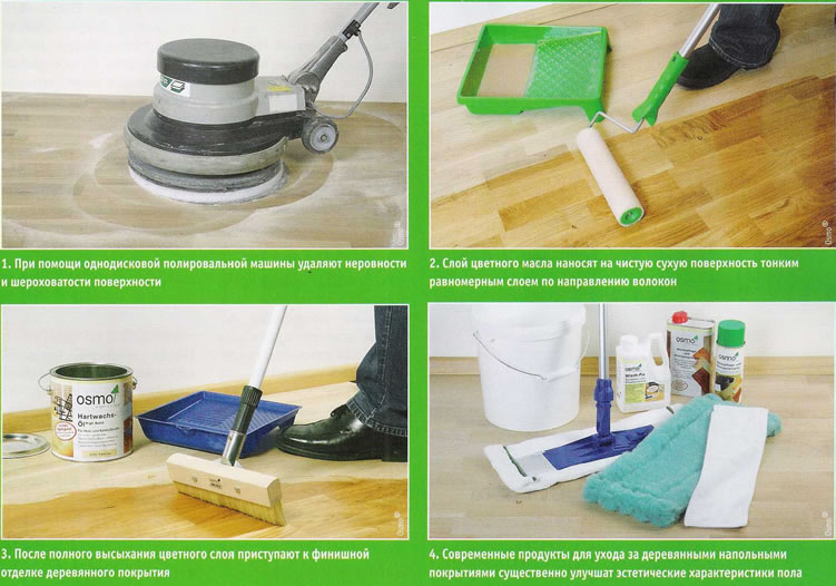 СоветЭффект декоративного морения Для достижения эффекта декоративного морения через 20 минут после нанесения сотрите масло тканью по направлению волокон. ![]() Уход за полами, покрытыми масломHartivachs-Ol, довольно просто. Регулярная очистка пылесосом или влажная уборка не более утомительна, чем уход за кафельной плиткой. Сухая и влажная уборка обеспечит полу красоту и ухоженный вид на долгие годы. Для поддержания чистоты достаточно регулярно подметать полы обычным веником, пылесосить или очищать при помощи специальной насадки зеленого цвета из набора Opti-Set. Если требуется влажная уборка, то в зависимости от степени загрязнения пола растворяют в воде необходимое количество концентрированного чистящего средства Wisch-Fix, прекрасно очищающего поверхность и уменьшающего скольжение. Как правило, достаточно колпачка на литр воды. Для освежения потускневших деревянных полов подойдет средство WPR. Состав наносят на предварительно вымытые и хорошо просушенные полы и распределяют тонким слоем по поверхности при помощи насадки из активного волокна из набора Opti-Set. Если правильно и регулярно ухаживать за деревянным полом, он прослужит долгие годы, радуя глаз природной красотой. Советы при окраске пола• Для цветной прозрачной тонировки выбирайте оттенки, близкие к исходному цвету древесины или темнее. Результат покраски зависит в том числе от свойств и степени обработки древесины, поэтому рекомендуется сделать пробное окрашивание образца. • Для твердых темных пород древесины, таких как венге, махагон, мербау, содержащих большое количество маслянистых веществ, рекомендуется — Klarwachs масло с воском для твердых пород. В статье использованы материалы Osmo — ведущего немецкого производителя лакокрасочных материалов, более 40 лет выпускающего высокотехнологичные покрытия из натурального сырья для древесины, разработанные в собственной научной лаборатории. Журнал "Современный ремонт" №26, 2010