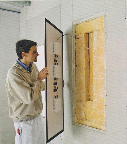 Звучащие стеныОтменное качество звучания музыки обеспечивают акустические колонки, далеко не всегда вписывающиеся в интерьер. Можно ли сделать их менее заметными? Благодаря так называемым звуковым плитам способны звучать даже... стены. ![]() Задача 1: установка звуковых плит![]() Звуковая плита легко привинчивается к несущей конструкции, как и соседние листы гипсокартона. (Рurеп)