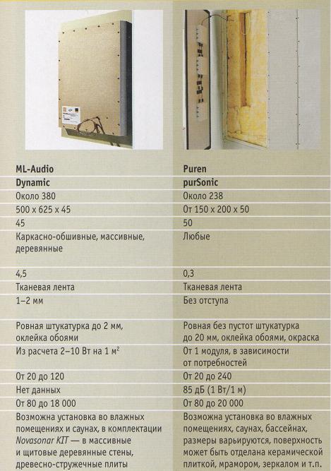 1. Проверка работы динамиковПеред окончательной установкой необходимо внимательно проверить работу каждого динамика, закрепленного на плите, по отдельности. 2. Проверка крепежных соединенийПлиту с полностью смонтированным на ней оборудованием надо слегка встряхнуть, чтобы убедиться в отсутствии характерного дребезжания ослабленного крепежа. При наличии подозрительных звуков — подтянуть резьбовые крепления. 3. Несущая конструкцияЗвуковую плиту прочно и плотно привинчивают к несущей конструкции, чтобы в дальнейшем крепежные винты под воздействием вибрации не издавали неприятное дребезжание или потрескивание. 4. Расположение плитДля равномерного распределения звука в помещении рекомендуется встраивать плиты в верхнюю треть стены или перегородки. 5. Качество звучанияДля хорошего качества звука следует располагать плиты на противоположных стенах (одна строго напротив другой). Для качественного стереозвучания необходимо установить не менее двух плит, а если требуется объемный звук (к примеру, Surround-Sound для домашнего кинотеатра) — от пяти и более. Как и все удачные изобретения, звуковая плита устроена на удивление просто. Она представляет собой обычный лист гипсокартона или другой облицовки, применяющейся при «сухом» методе отделки и внешне не отличающейся от окружающей обшивки. Обращенная в помещение лицевая сторона листа предназначена для отделки теми же материалами, что и остальная поверхность стены, а на внутренней стороне крепится одно или несколько специальныхустройств, которые для простоты будем обозначать «динамик» (как его именуют в инструкциях сами производители), хотя правильнее назвать его эксайтером (от англ exciter — «задающий генератор»). Устройство преобразует электромагнитные импульсы от управляющего процессора в вибрацию, которая, подобно вибрации струн на гитаре или скрипке, передающейся на корпус музыкального инструмента, превращается в чистое, правильное по тону звучание. Таким образом, звуковая плита не просто пропускает через себя звук от внешнего источника, а сама является его источником. При этом угол излучения звуковых волн составляет 180° как по горизонтали, так и по вертикали. Это означает, что плита равномерно заполняет звуком в широком диапазоне частот все пространство перед собой, что недостижимо при использовании традиционных акустических систем, из-за меньшего угла звучания воздействующих в основном на центральную часть того помещения, где они установлены. Звуковая плита может использоваться в комплексе с традиционными воспроизводящими системами и усилителями без каких-либо дорогостоящих промежуточных устройств.