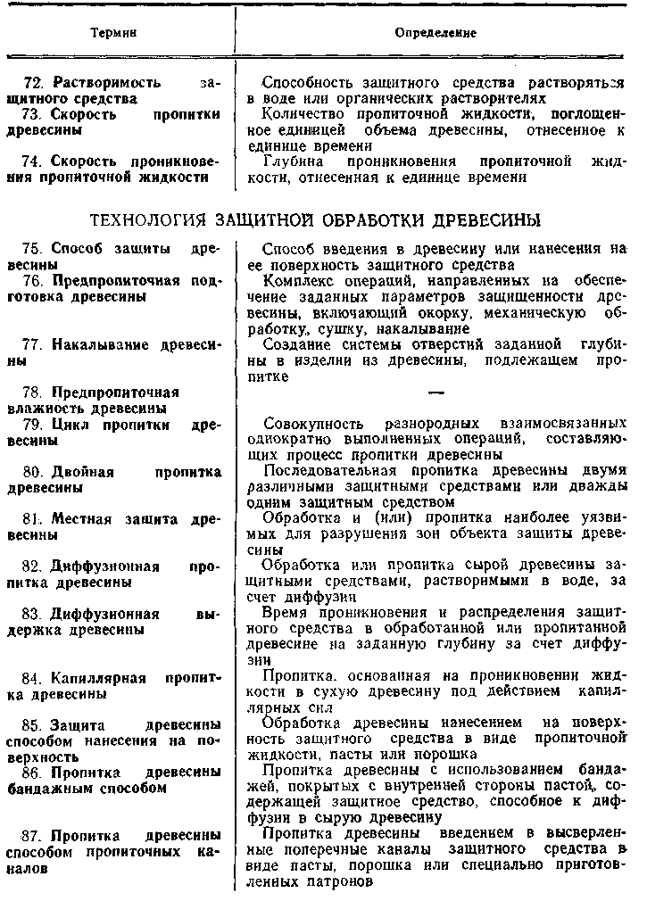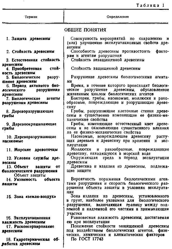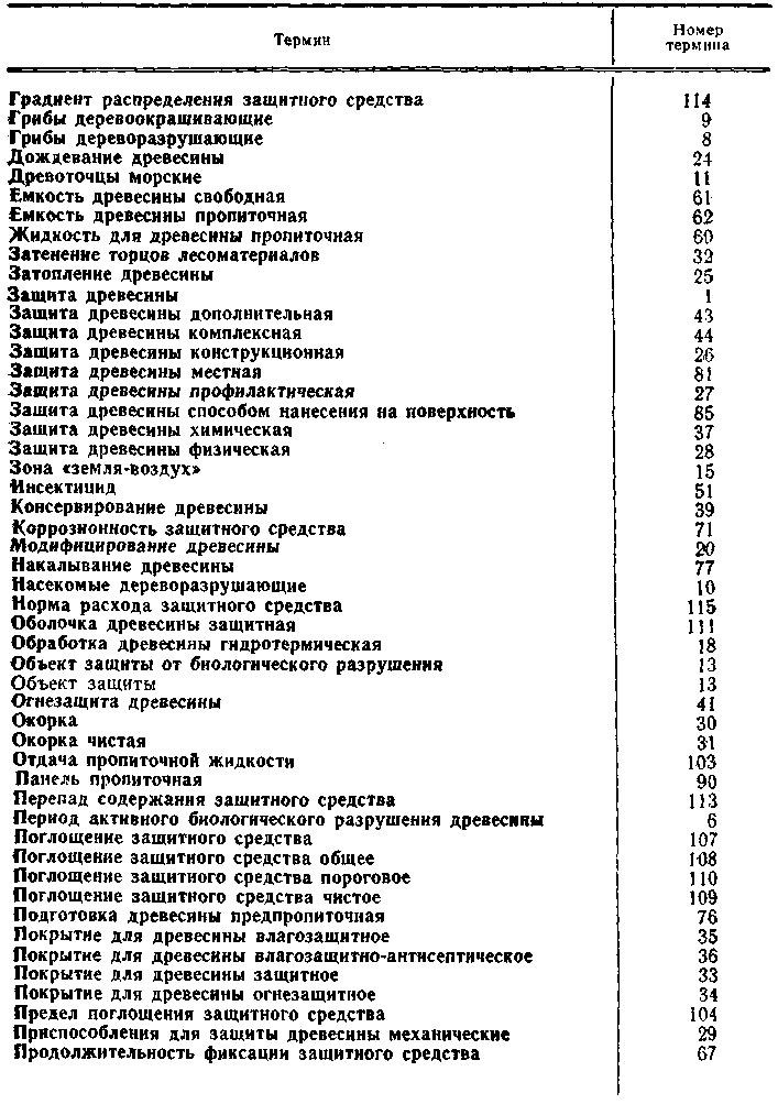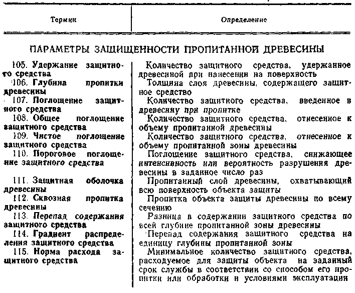 Настоящий стандарт устанавливает термины и определения понятий, относящихся к защите древесины. Термины, установленные настоящим стандартом, обязательны для применения во всех видах документации и литературы, входящих в сферу работ по стандартизации или использующих результаты этих работ. 1. Стандартизованные термины с определениями приведены в табл. 1. 2. Для каждого понятия установлен один стандартизованный термин. Применение терминов - синонимов стандартизованного термина не допускается. 2.1. Для отдельных стандартизованных терминов в табл. 1 приведены в качестве справочных краткие формы, которые разрешается применять в случаях, исключающих возможность их различного толкования. 2.2. Приведенные определения можно, при необходимости, изменять, вводя в них производные признаки, раскрывая значения используемых в них терминов, указывая объекты, входящие в объем определяемого понятия. Изменения не должны нарушать объем и содержание понятий, определенных в данном стандарте. 2.3. В случаях, когда в термине содержатся все необходимые и достаточные признаки понятия, определение не приведено и в графе "Определение" поставлен прочерк. 3. Алфавитный указатель содержащихся в стандарте терминов на русском языке приведен в табл. 2. 4. Стандартизованные термины набраны полужирным шрифтом, их краткая форма - светлым.
