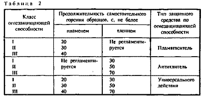 7.4 По продолжительности самостоятельного горения образцов древесины пламенем и тлением устанавливают тип защитного средства по огнезащищающей способности (таблица 2). 7.5 Результаты испытаний записывают в протокол испытания, который оформляют в соответствии с приложением А.