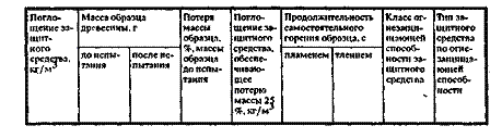 Форма протокола испытания огнезащитных свойств препаратов Наименование и марка защитного средства Пропиточная емкость древесины.................. Концентрация раствора защитного средства.......