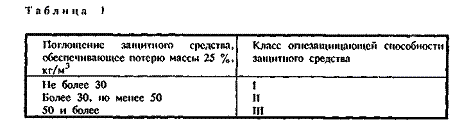 7.3 По значению этого поглощения устанавливают класс огнезащищающей способности защитных средств в соответствии с таблицей 1.