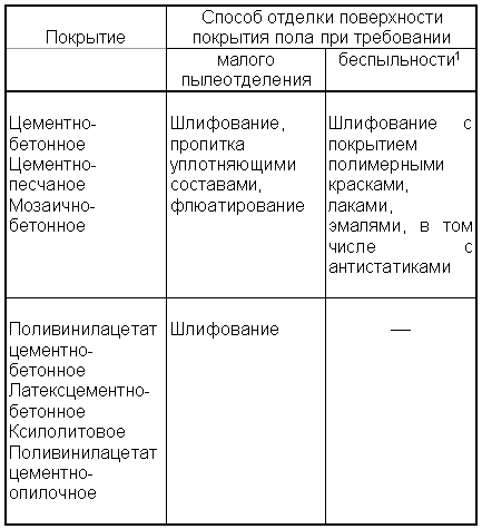 1 УКазанное требование должно удовлетворяться в помещениях, где пылеотделение от пола приводит к нарушению нормального режима работы технологического оборудования и автоматизированного транспорта с числовым программным устройством. ПРИЛОЖЕНИЕ 5