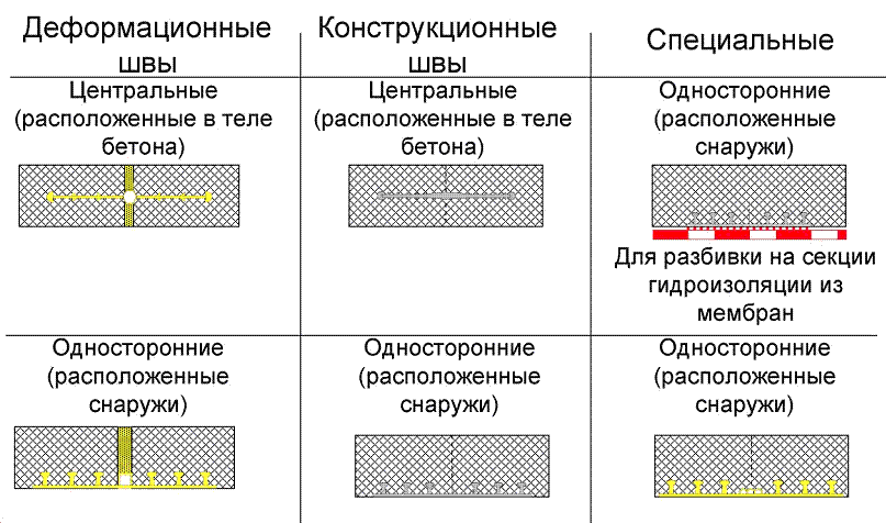 Швы в конструкциях с густым и сложным армированием предпочтительнее выполнять односторонними гидрошпонками, так как они размещаются вне арматуры