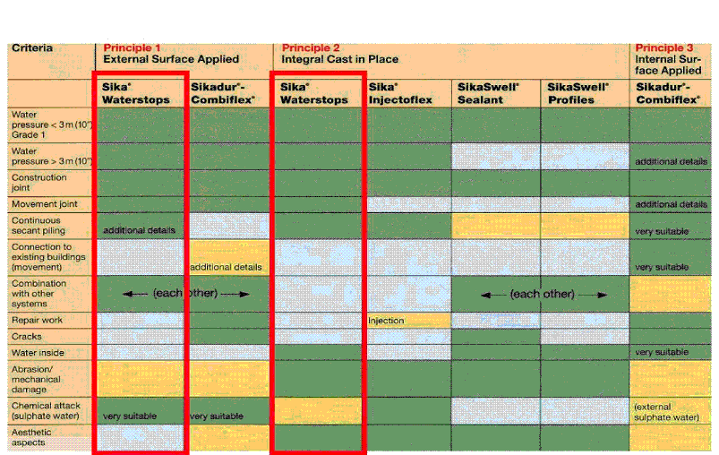 Выбор критериев для гидрошпонок Sika® Waterbars