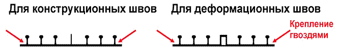 Гидрошпонка закрепляется к опалубке с помощью обычных гвоздей забитых по кромке шпонки