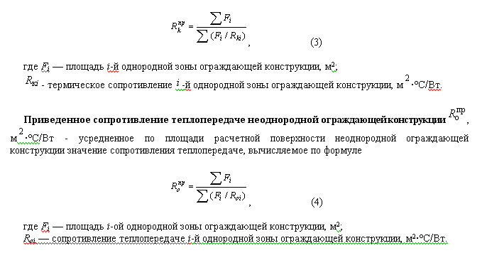 Приведенное термическое сопротивление неоднородной ограждающей конструкции , м ·°С/Вт - усредненное по площади расчетной поверхности неоднородной ограждающей конструкции значение термического сопротивления, вычисляемое по формуле