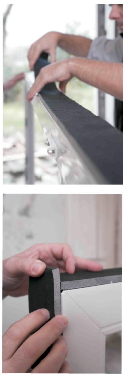 Предварительно сжатая полиурета-новая уплотнительная лента со специальной пропиткой в полипропиленовой пленке. Зона отрыва пленки при монтаже обозначена перфорированным швом. Крепление пленки происходит с помощью самоклеющейся полосы.