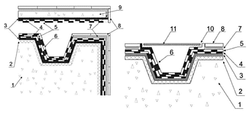Примечание: на стенках бассейна вместо слоя самовыравнивающейся смеси наносятся слои штукатурки и шпатлевки. 4.3.2. Устройство переливов Многие бассейны проектируются со скрытыми переливами для слива воды по периметру бассейна, которые закрываются решетками. Даже если весь бассейн отделывается плиткой или мозаикой, такие места удобно и экономически выгодно делать облегченными. На видимой части бассейна укладывается плитка или мозаика, а скрытые участки, нуждающиеся в гидроизоляции, дополнительно (к двум обязательным слоям мастичной гидроизоляции) покрываются слоем мастики "Гипердесмо". Во избежание разрыва или истирания мастики в местах, на которых будет лежать решетка, необходимо применять армировочную сетку (Рис.6). ![]() Рис.6 Устройство переливов (скрытого и с решеткой)